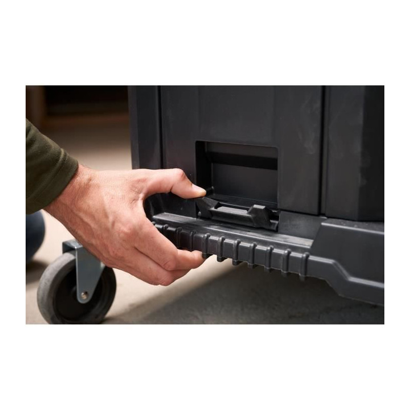 Coffre de chantier en polypropylene étanche avec 2 couvercles indépendants. Attaches et charnieres métal. Large poignée bi-matiere et 2 grandes roues. Les modules peuvent s'adapter en se fixant facilement sur le couvercle du coffre grâce aux clips latéraux. Coloris Noir Longueur (mm) 800 Hauteur (mm) 430 Contenance (L) 113 Profondeur (mm) 600 Charge maximum (kg) 50 Unité de vente (1 piece) Référence