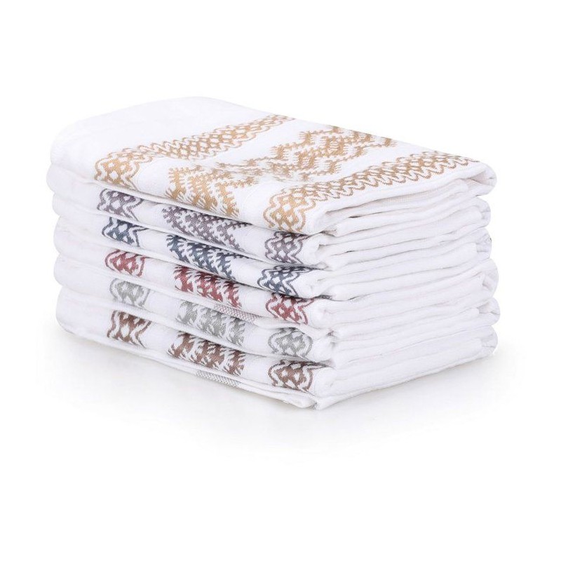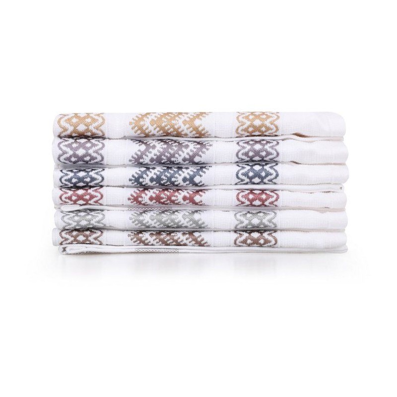 Ensemble de 6 serviettes de toilette - 40 x 60 cm - Blanc, Marron, Jaune, Bleu, Violet, Gris