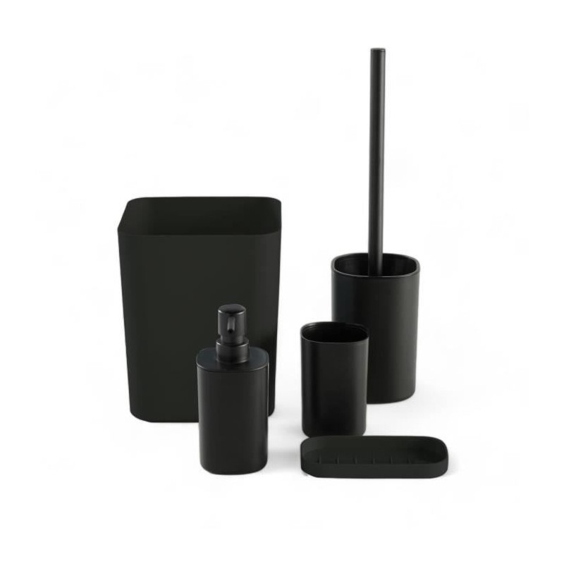 Set de 5 acc SDB - TODAY - UTILITY - Distr de savon, porte-brosse a dents, porte savon, brosse WC, poubelle - Black