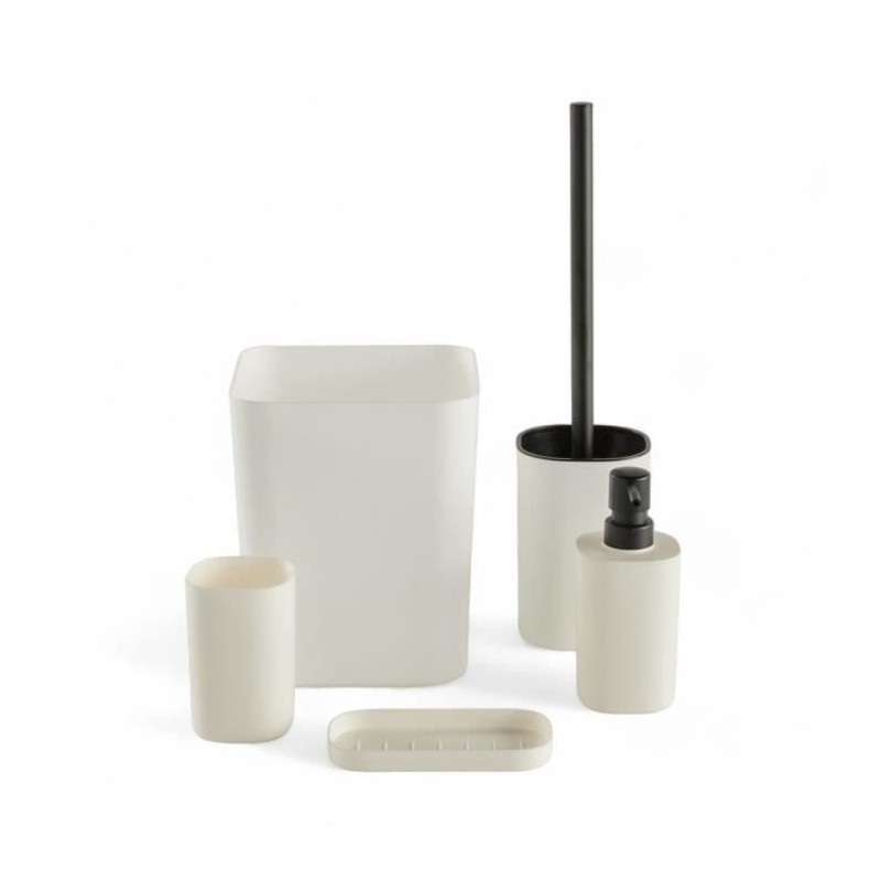 Set de 5 acc SDB - TODAY - UTILITY - Distr de savon, porte-brosse a dents, porte savon, brosse WC, poubelle - White