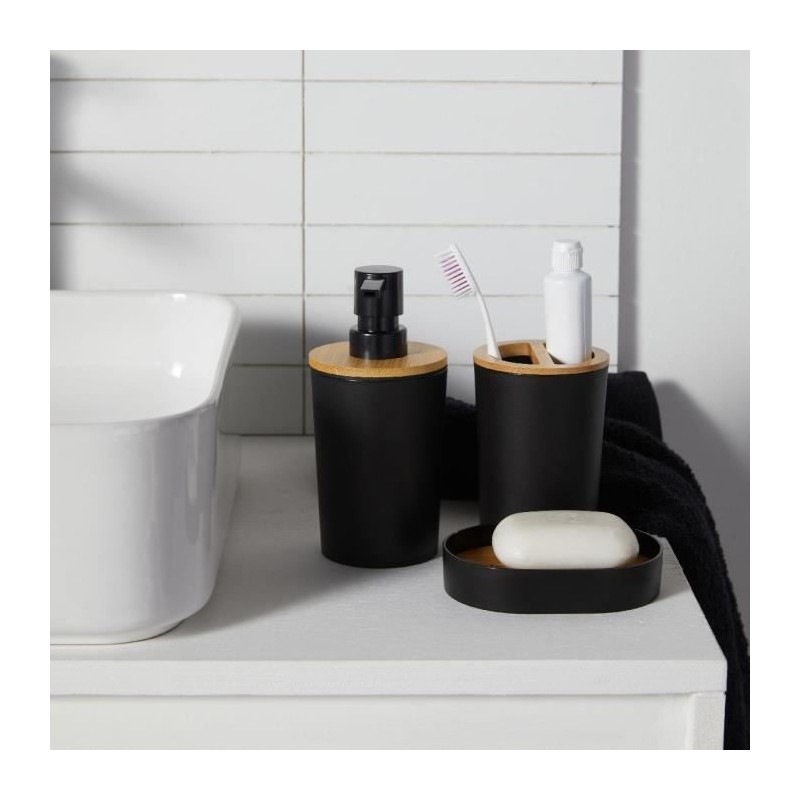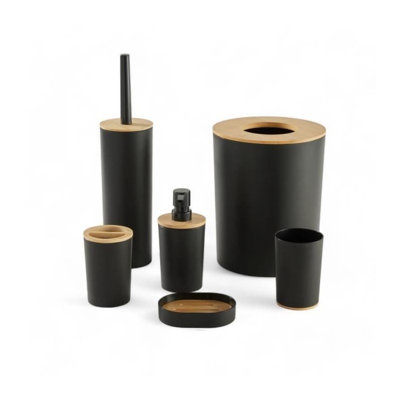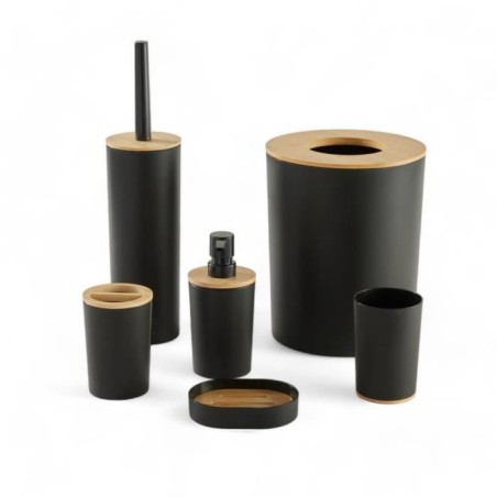 Lot de 6 acc SDB - TODAY - UTILITY - Dist savon, gobelet, porte-brosse a dents, porte savon, brosse WC, poubelle - Black