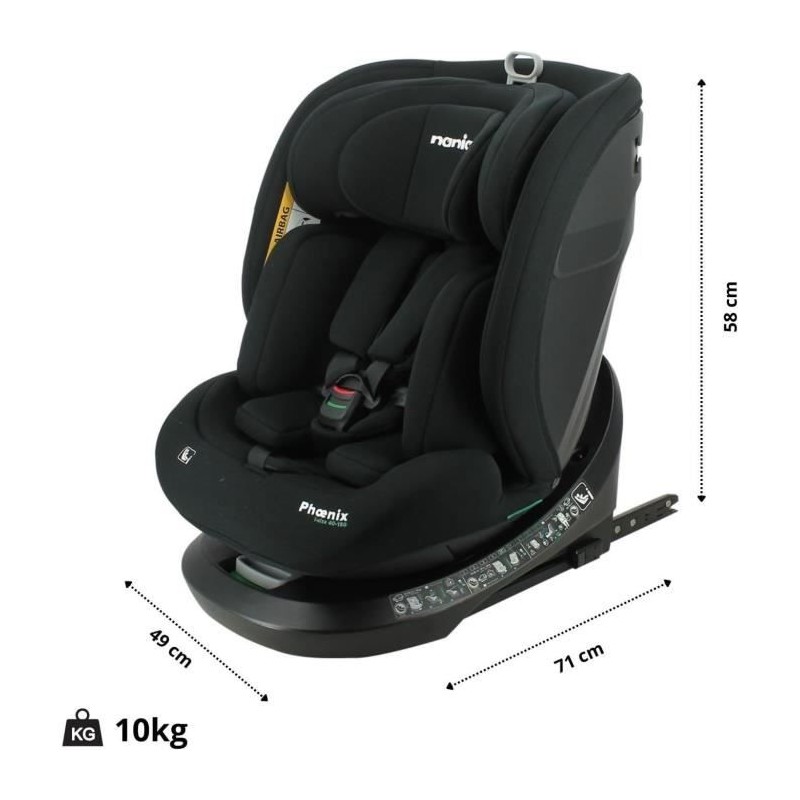 Siege auto isofix - NANIA - PHoeNIX - Groupe 0/1/2/3 - I-Size - Pivotant - Inclinable - Réducteur - Noir