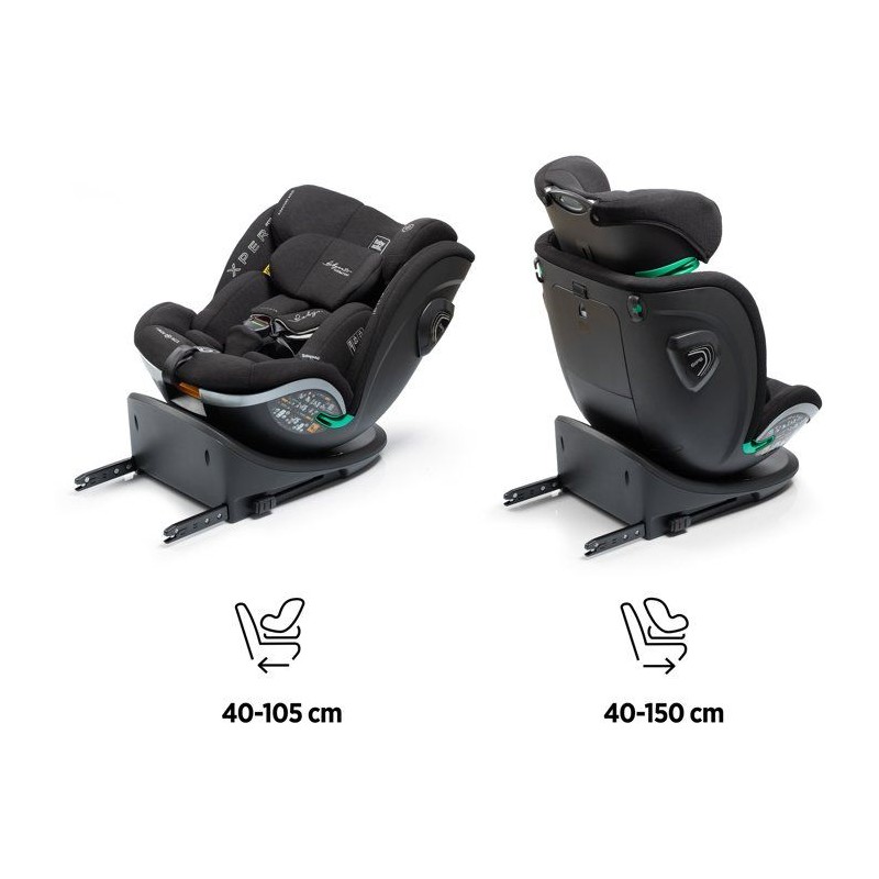 Xperta est un siege auto i-Size pivotant pensé pour accompagner votre enfant de la naissance jusqu'a environ 12 ans. Sa rotation 360° facilite l'installation au quotidien, tandis que son systeme évolutif permet un ajustement progressif selon l'âge et la taille (40-150 cm). Dos a la route jusqu'a 105 cm puis face a la route ensuite, il offre confort et sécurité grâce a ses positions d'inclinaison et son réducteur moelleux. Une solution durable, pratique et rassurante au design anthracite moderne.