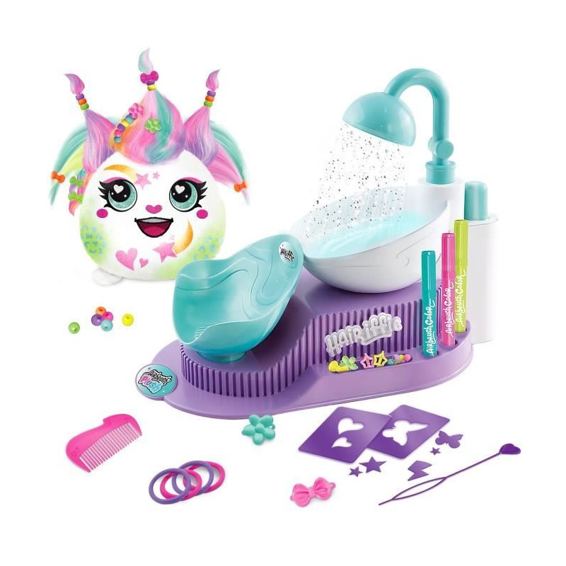 Personnalise ta peluche avec le salon de coiffure Hair'iffic de Canal Toys ! Utilise le spray, les feutres et les pochoirs pour créer des coiffures uniques. Lave-la facilement et recommence a t'amuser. Idéal des 6 ans !