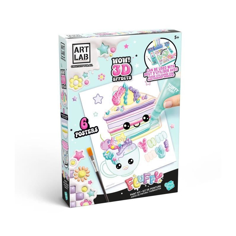 Créez des peintures 3D amusantes avec le Kit de peinture Fluffy ! Peignez le fond, choisissez une couleur et un embout pour des effets 3D. Le kit comprend tout le nécessaire pour réaliser 6 posters et ajouter des décorations. Idéal pour les enfants des 6 ans.