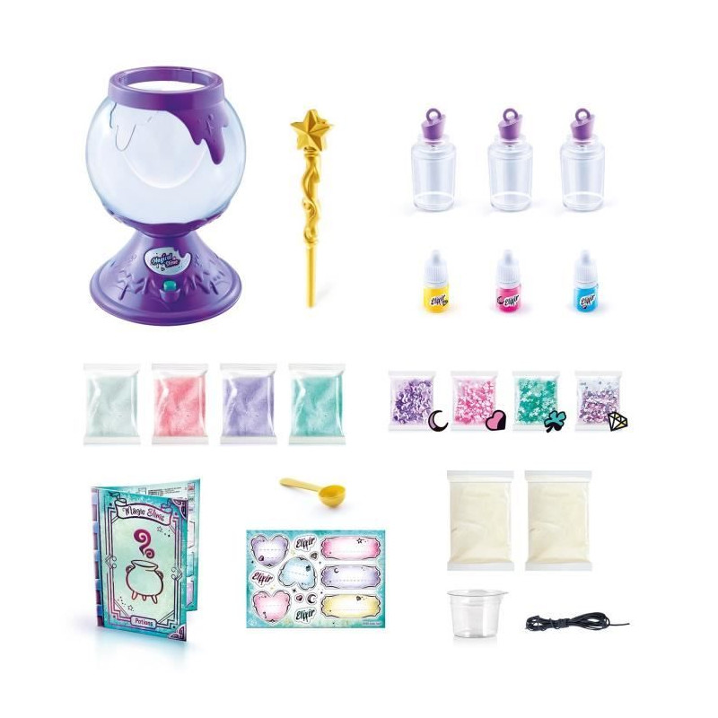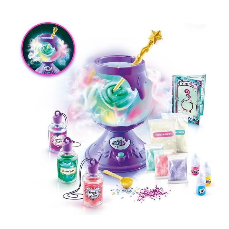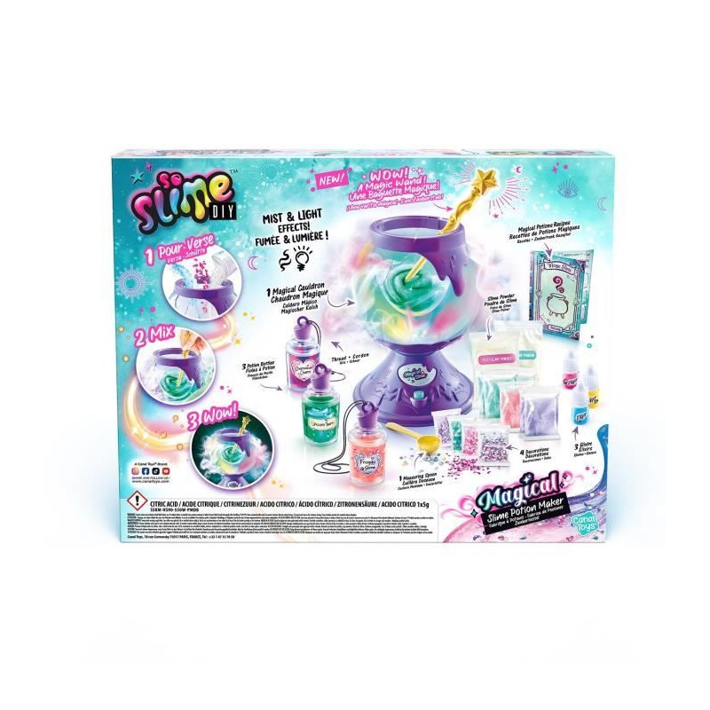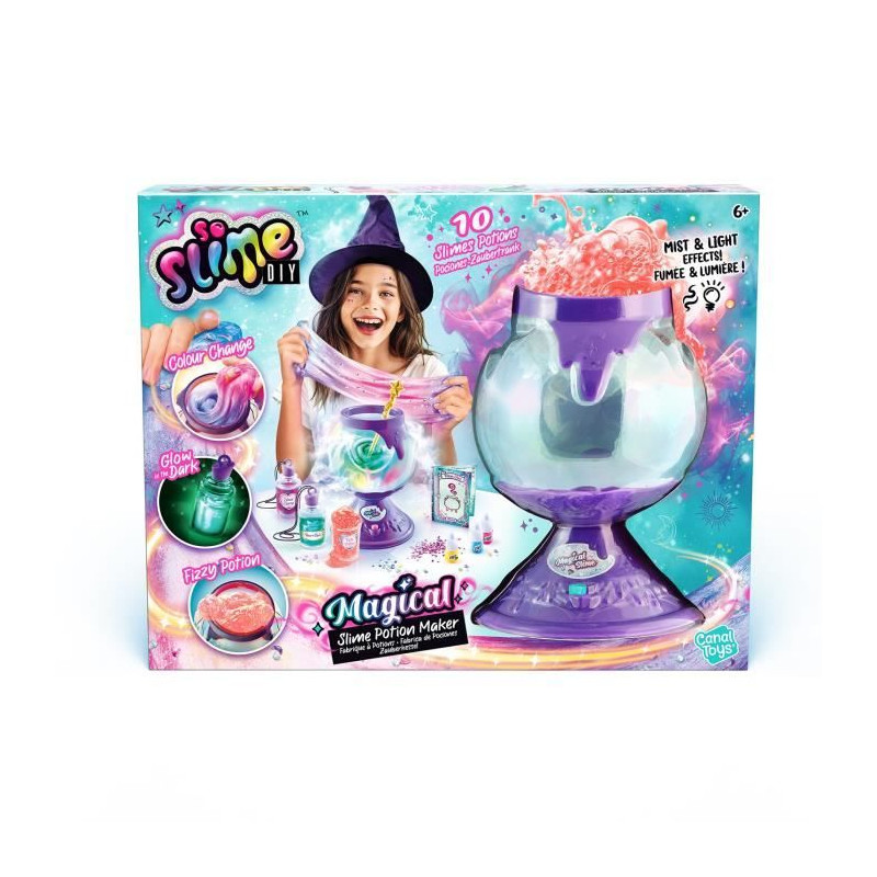 Découvrez le chaudron magique So Slime Magical de Canal Toys, qui permet de créer 10 potions de slime uniques. Avec des recettes pour un slime phosphorescent, effervescent et changeant de couleur, ce jeu est parfait pour les enfants a partir de 6 ans. Fonctionne avec 4 piles AA non incluses.