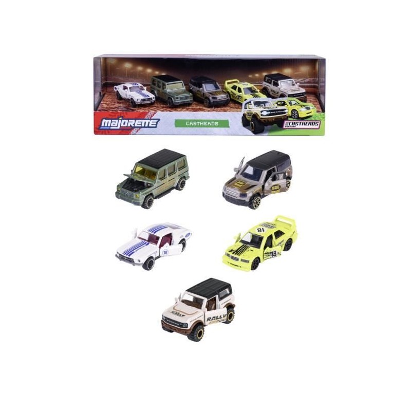 Retrouvez les automobiles les plus célebres au format mini et en métal grâce a Majorette !_x000D_ Véritables passionnés ou simples amateurs, vous trouverez votre bonheur parmi les nombreuses gammes que présente la marque !_x000D_ Ce grand coffret se compose de 5 modeles de véhicules a l'effigie du magazine automobile Cast Heads._x000D_ Vous serez vite séduit par ces véhicules a échelle 1/64eme qui disposent de parties ouvrantes, de phares translucides et de suspensions !_x000D_ N'hésitez plus a commencer une nouvelle collection ou a amuser vos enfants avec ces petites voitures !_x000D_ A partir de 3 ans.