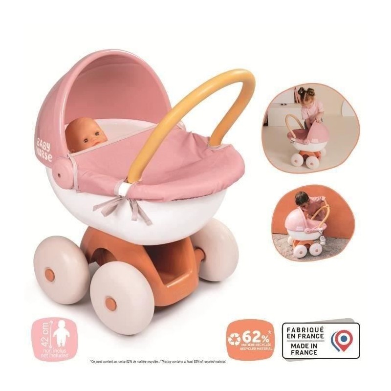 Votre enfant pourra balader son poupon en toute tranquillité avec le landau câlin Baby Nurse !_x000D_ Grâce a sa poignée ergonomique d'une hauteur de 53,5cm, ce landau est parfaitement adapté aux enfants a partir de 18 mois._x000D_ Le bac de rangement permettra a votre petit de transporter tous les accessoires nécessaires pour prendre soin de son bébé a tout moment de la journée !_x000D_ Le tissu est amovible, ce qui vous permettra de le laver des que vous le souhaitez._x000D_ _x000D_ Adapté aux poupons jusqu'a 42cm._x000D_ Poupon non inclus._x000D_ _x000D_ Ce produit contient 62% de matiere recyclée._x000D_ A partir de 18 mois - Fabrication française.