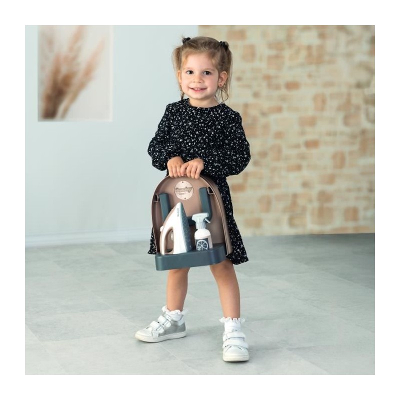 Cette planche a repasser pliable, compacte et astucieuse permettra aux tous petits d'imiter papa et maman dans les tâches de repassage. Tout est a portée de main, la planche, le fer a repasser Tefal réaliste avec son bouton cric cric et la bouteille spray. Facile a ranger, elle est parfaite pour les petits intérieurs. Au design moderne et innovant elle allie technicité et élégance. Made in France