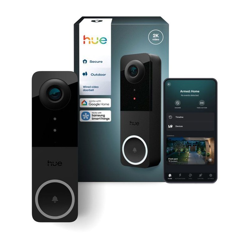 Sonnette vidéo fillaire connectée - Philips Hue - Filaire - 2K - Conversation bidirectionnelle - Extérieur