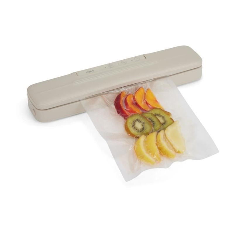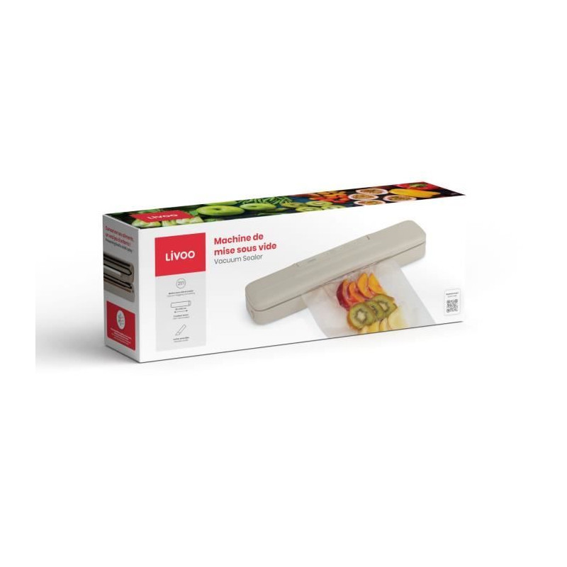 Conservez vos aliments avec la machine de mise sous vide LIVOO DOM503C. Avec une puissance de 80W et deux fonctions, elle garantit des résultats parfaits. Livrée avec un rouleau de film inclus.