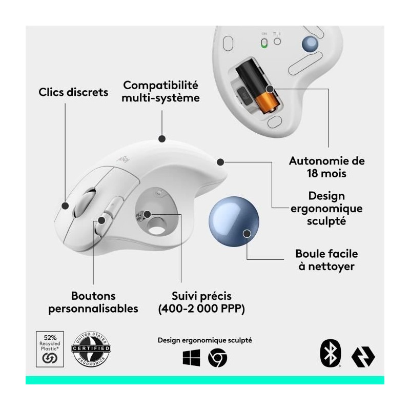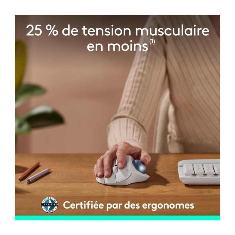 Souris ergonomique - sans fil - Logitech - ERGO M575S - Blanc
