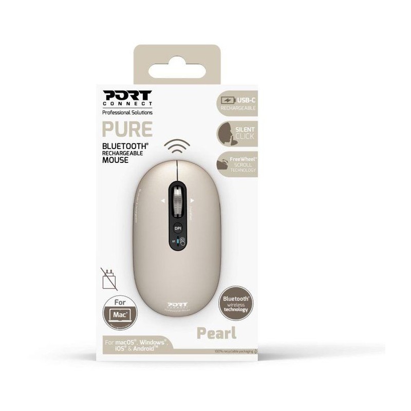Souris sans fil - PORT Designs - 910500 PURE - Bluetooth - Rechargeable - Beige clair