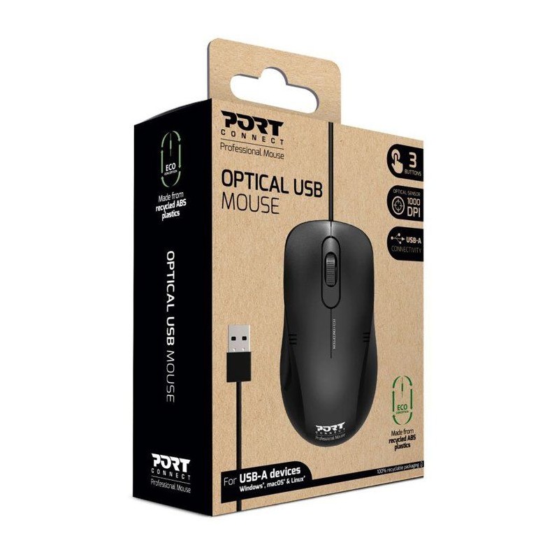 La souris optique USB PORT Connect est parfaite pour une utilisation professionnelle intensive avec sa capacité de plus de 30 millions de clics. Son design ergonomique. ambidextre et léger offre un confort optimal lors de l'utilisation et son câble de 1.5 m de long offre une grande liberté de mouvement. Profitez également d'une grande précision grâce a son capteur optique de 1000 DPI. Compatible avec Windows & MacOS. il suffit de le connecter via USB-A a votre ordinateur pour commencer a travailler. Aucun pilote n'est nécessaire grâce a son installation Plug & Play.