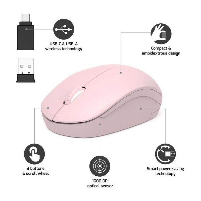 Souris sans fil - PORT Designs - 900541 Collection II - 2.4 GHz - Rose pâle