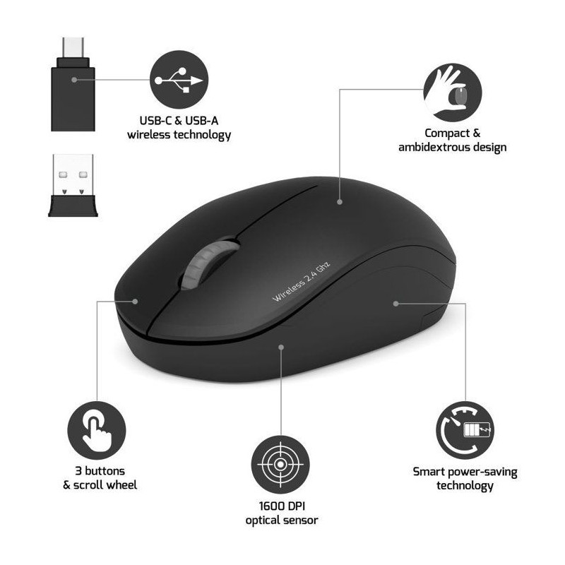 Souris sans fil - PORT Designs - 900540 Collection II - 2.4 GHz - Graphite Noir