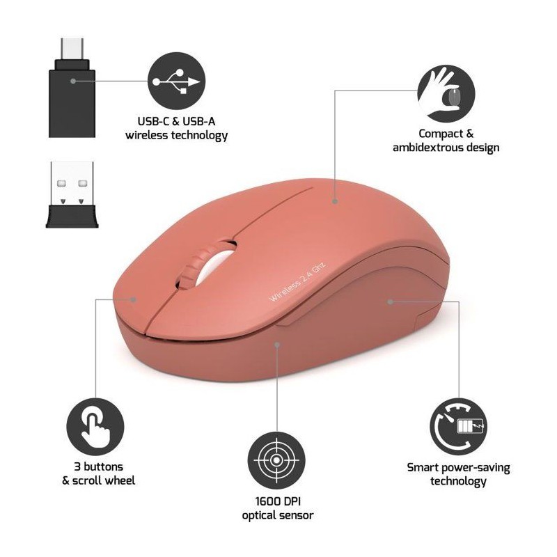 Souris sans fil - PORT Designs - 900542 Collection II - 2.4 GHz - Terracotta