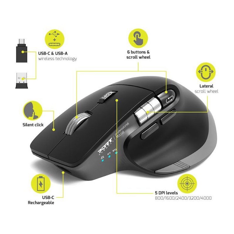 Souris sans fil - PORT Designs - 910203 ULTIMATE - Bluetooth & 2.4 GHz - Rechargeable - Gris