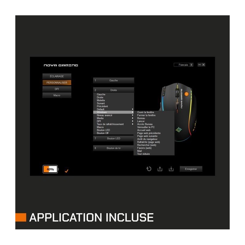 Souris gaming - Sans fil - Nova Gaming - Persee - Noir