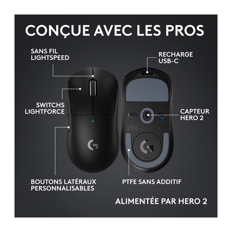 Souris - Sans fil - Logitech G - PRO X Superlight 2c - Noir