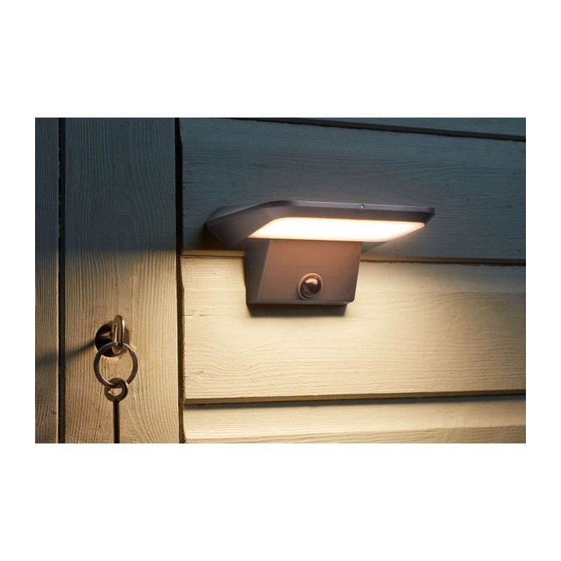 Illuminez vos patios, garages, entrées et remises avec ce spot solaire mural équipé d'un détecteur de mouvements. Il se charge au soleil et s'allume automatiquement a la tombée de la nuit. Profitez de son éclairage super brillant avec des LEDs blanc chaud offrant 200, 500, ou 800 lumens. Dimensions : 7,5 x 15,5 cm.