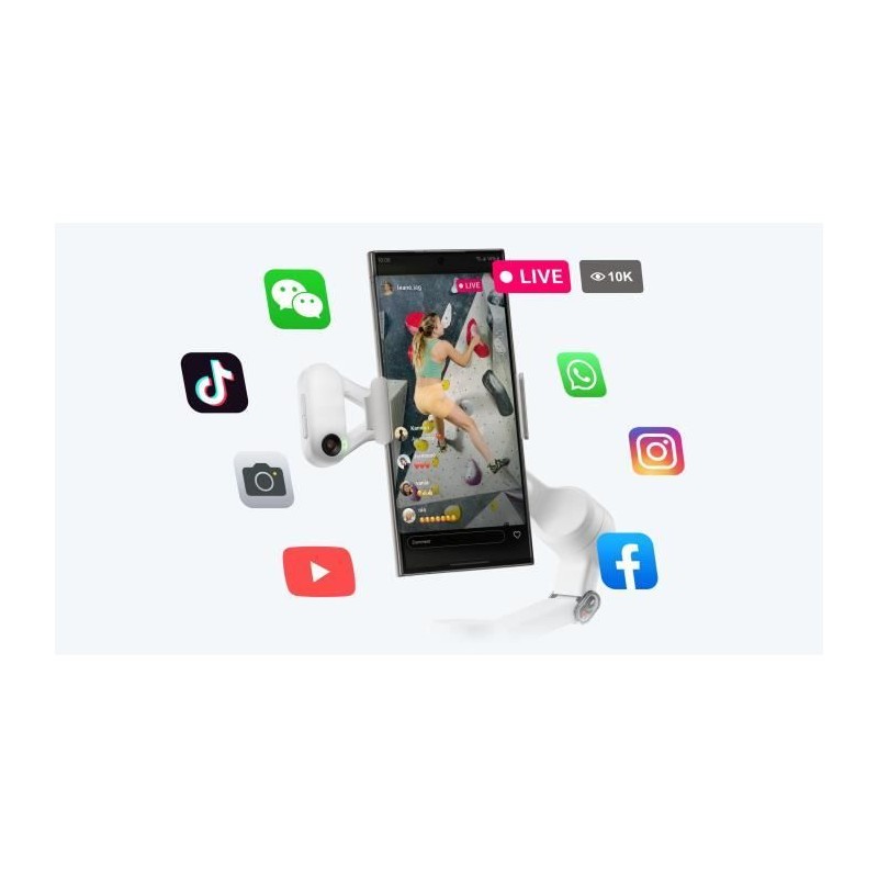 Stabilisateur smartphone - INSTA360 - Flow 2 - Suivi panoramique 360° - Stabilisation 3 axes - Blanc