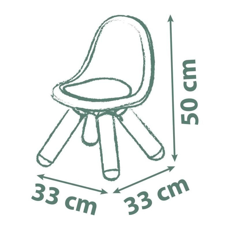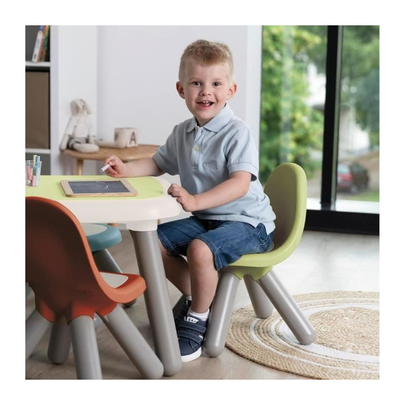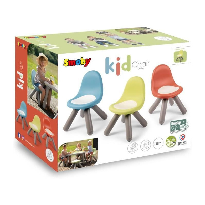 La chaise verte Smoby Life Kid est idéale pour les enfants des 18 mois. Fabriquée a 90% de matiere recyclée, elle est stable et adaptée a l'intérieur comme a l'extérieur. Son design moderne et sa protection anti-UV garantissent durabilité et confort. Dimensions : 33 x 33 x 50 cm, hauteur d'assise : 27 cm. Fabrication française.