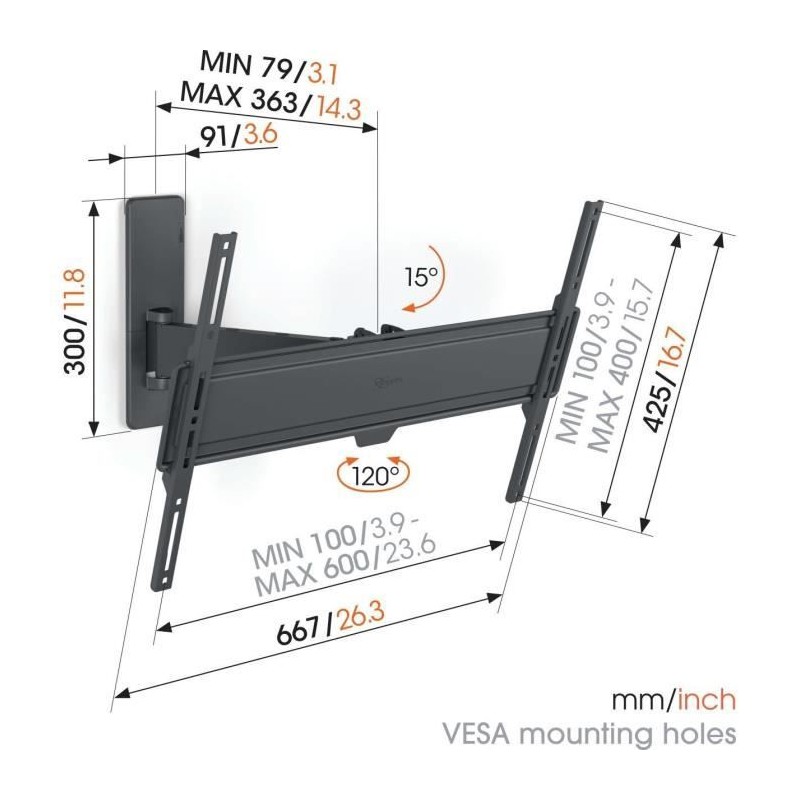 Support mural pour TV - VOGEL'S - TVM 1623 Full-Motion Large, 1 bras, 40-77"