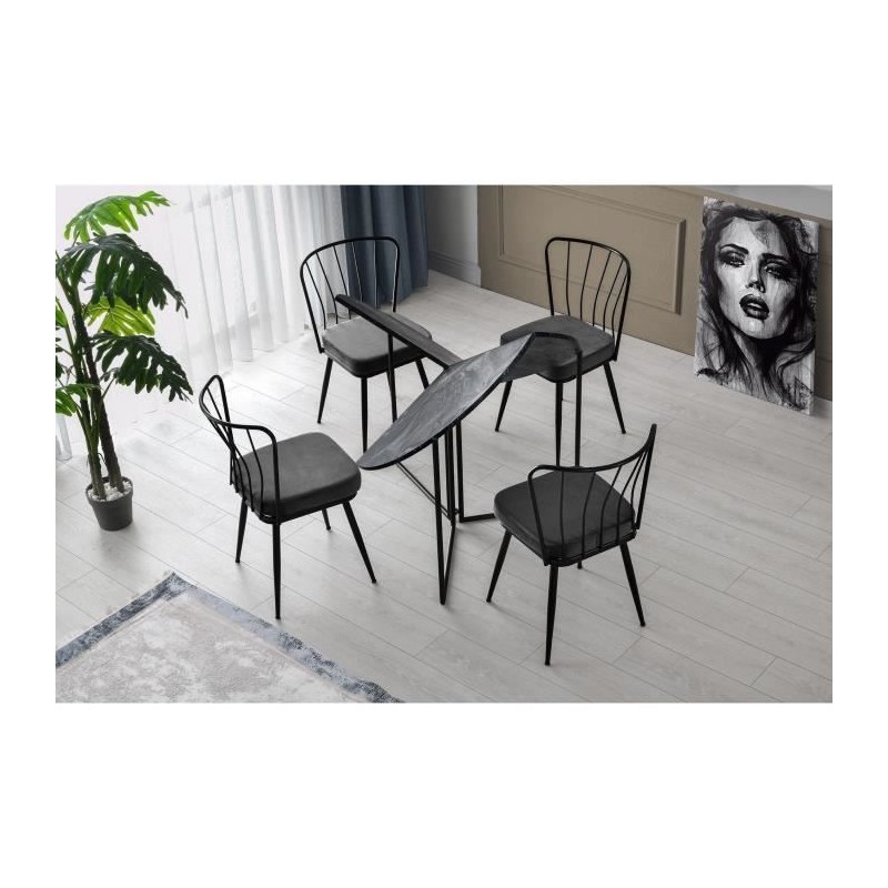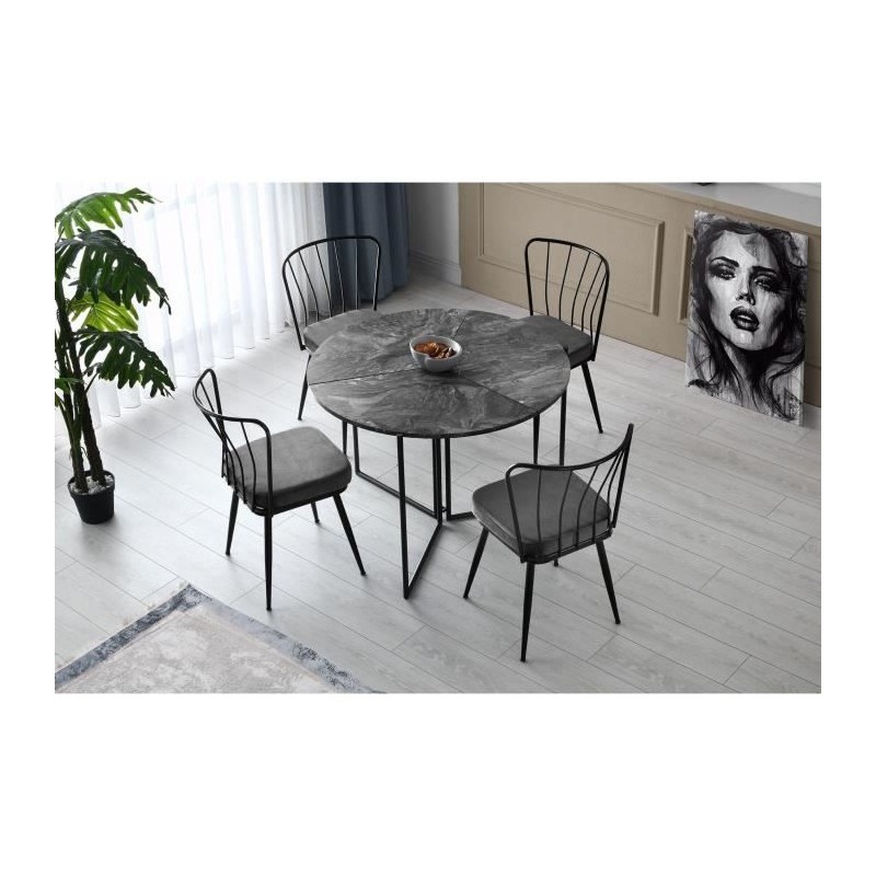 Table a manger - YAPRAK - Anthracite - Ronde - 4 personnes - 100 x 100 x 72 cm