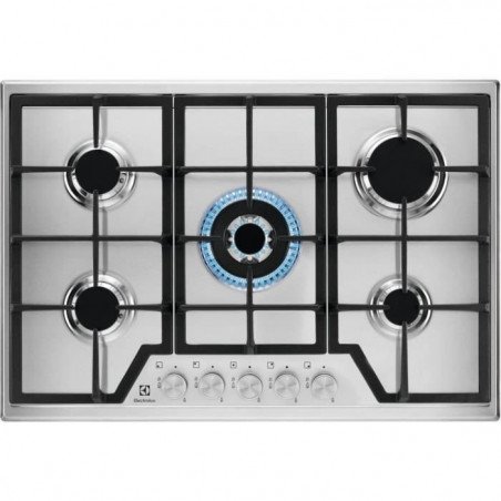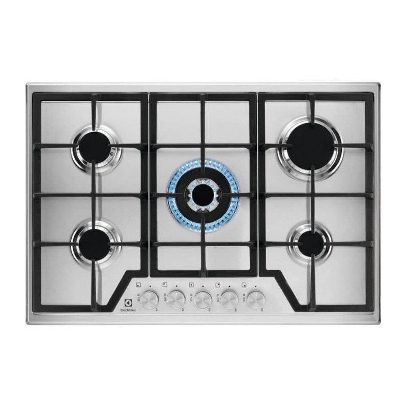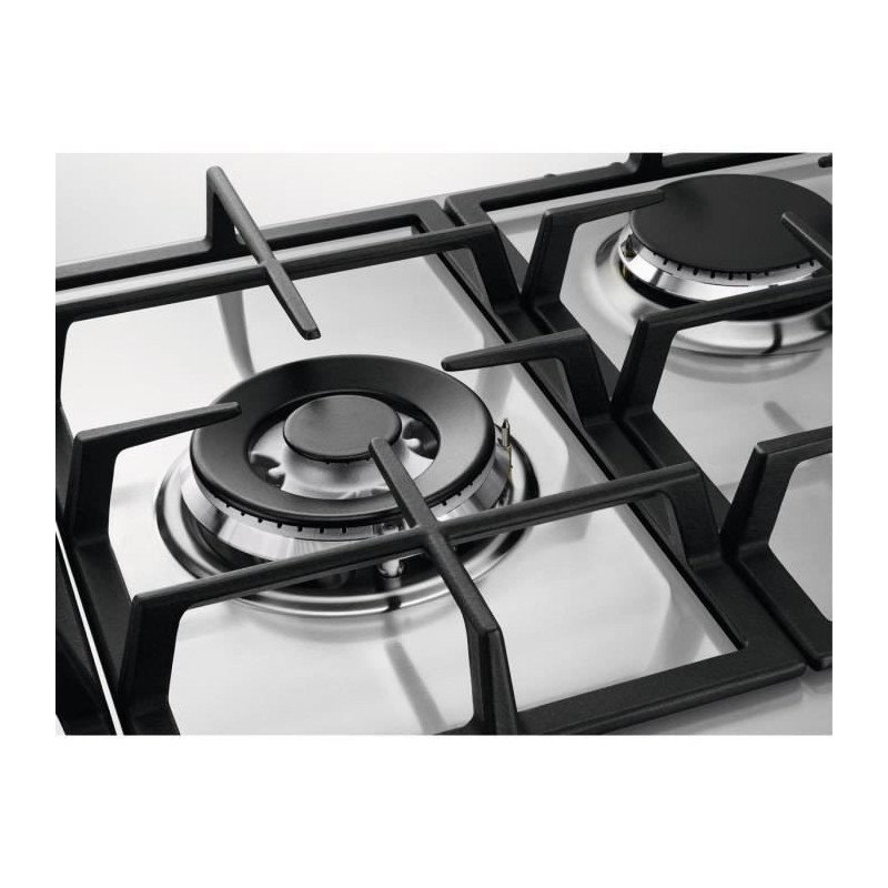 ELECTROLUX KGS7536SX - Table de cuisson gaz encastrable - 5 foyers - L 75 x P52cm - Inox - Grilles en fonte