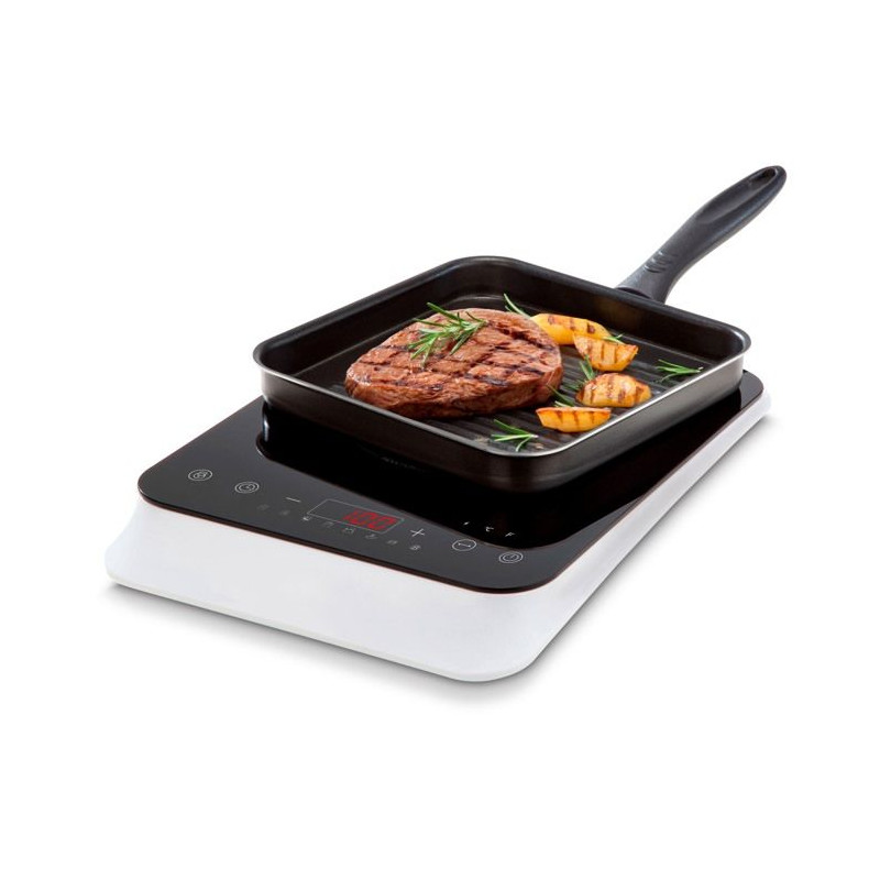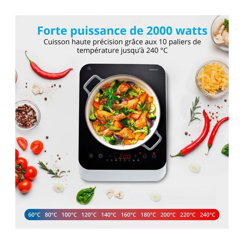 Plaque Induction Posable - MEDION MD18490 - 1 Foyer - 2000W - 60/240°C - 8 Programmes - L 29 x P 36 x H 6 cm - Blanc/Noir