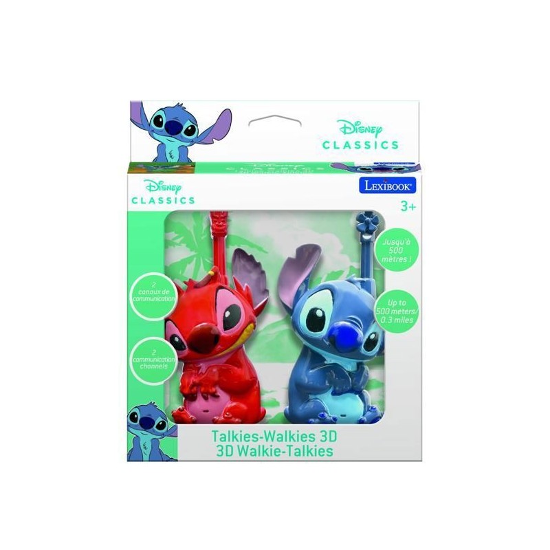 Découvrez les talkies-walkies Stitch et Leroy de LEXIBOOK, parfaits pour les jeunes aventuriers ! Avec une portée de 500 metres, 2 canaux de communication et un design 3D amusant, ces talkies-walkies sont idéaux pour jouer a l'extérieur. Fonctionnent avec 6 piles LR03 (non fournies).