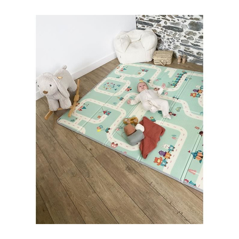 Maxi tapis d'éveil réversible - TINEO - 150 x 180 cm - Facade animaux / Circuit de voitures