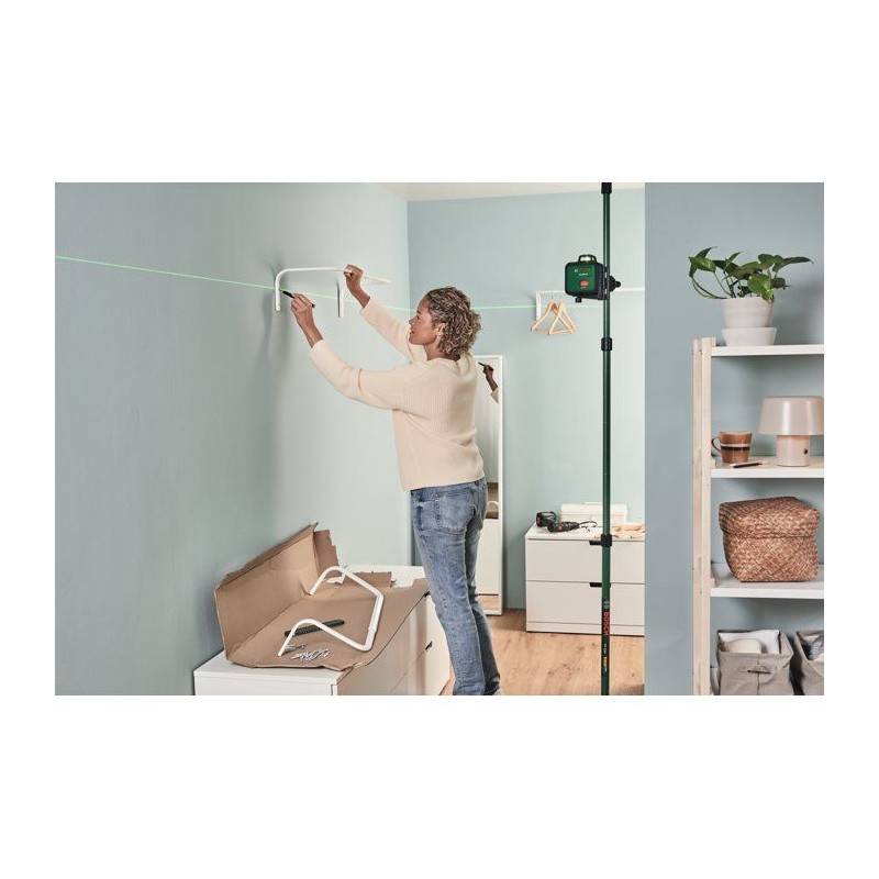 Avec son utilisation intuitive, sa précision et sa diode laser verte de grande qualité, le PLL 360-1G simplifie la réalisation d'alignements précis dans n'importe quelle piece. Sa ligne laser unique et horizontale a 360° permet d'effectuer sans effort des alignements performants sur plusieurs murs avec une visibilité améliorée, meme par forte luminosité. Conçu pour offrir une grande polyvalence, il affiche une précision de nivellement de +/- 0,4 mm/m et une portée maximale de 30 m de diametre, ce qui le rend idéal pour suspendre des tableaux, installer des étageres ou peindre. Avec sa batterie Li-Ion rechargeable et son chargeur USB-C®, votre outil est toujours pret a l'emploi et vous assure une grande flexibilité. Le PLL 360-1G garantit des résultats fiables pour les travaux a réaliser dans la maison.