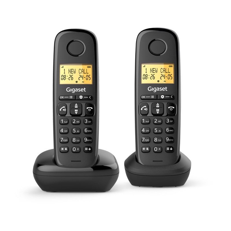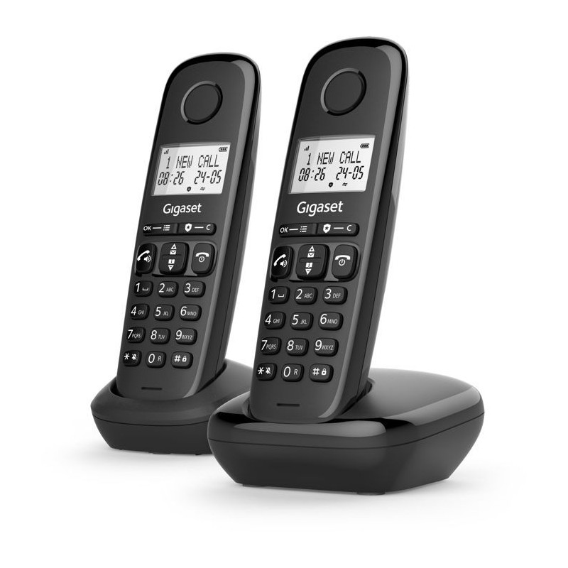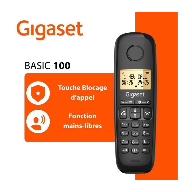 Téléphone fixe - GIGASET - Basic 100 Duo - Mode mains libres - Ecran rétroéclairé - Répertoire 50 contacts - Blocage d'app