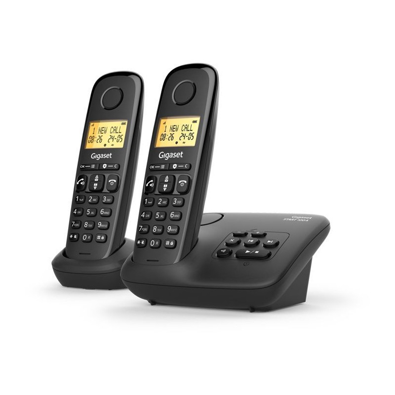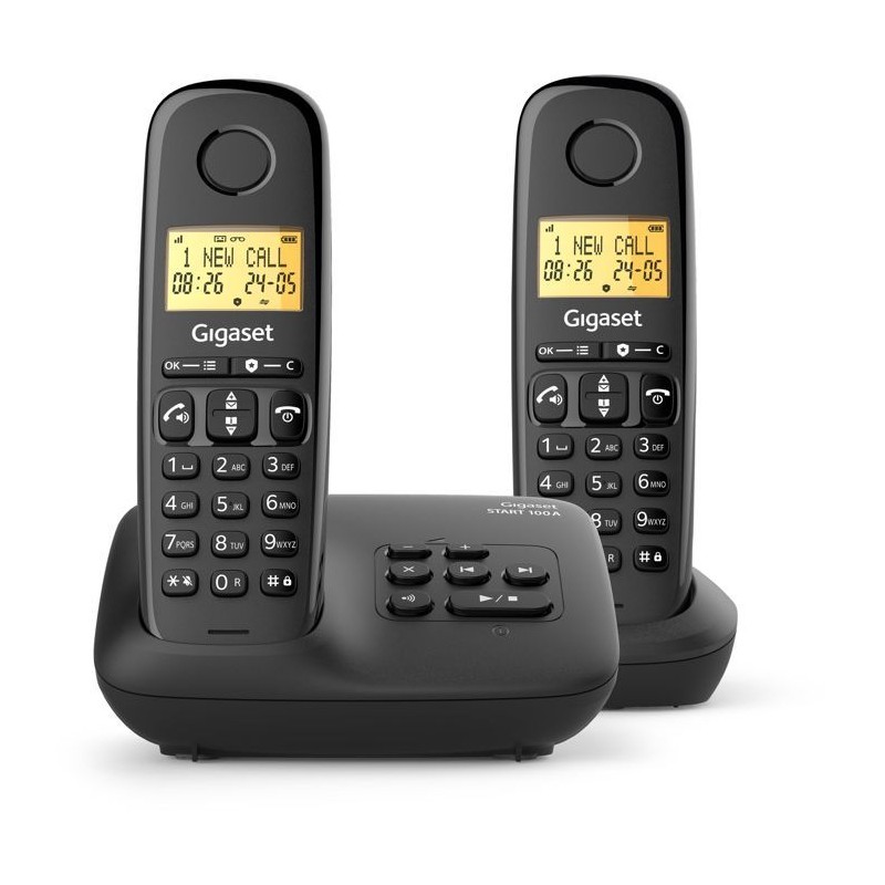 Téléphone fixe - GIGASET - Basic 100A DUO - Répondeur - Mains libres - Ecran rétroéclairé - Répertoire 50 contacts - Bloc