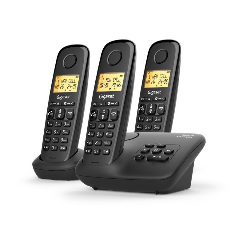 Téléphone fixe - GIGASET - Basic 100A TRIO - Répondeur - Mains libres - Ecran rétroéclairé - Répertoire 50 contacts - Blo