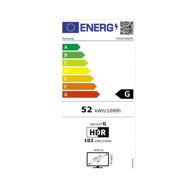 Samsung 43U7005F - TV LED 43 (109 cm) - 4K UHD 3840x2160 - HDR10+ - Smart TV - Gaming Hub - 3xHDMI - WiFi