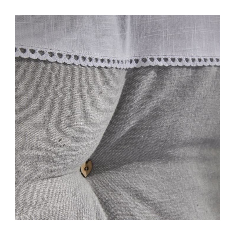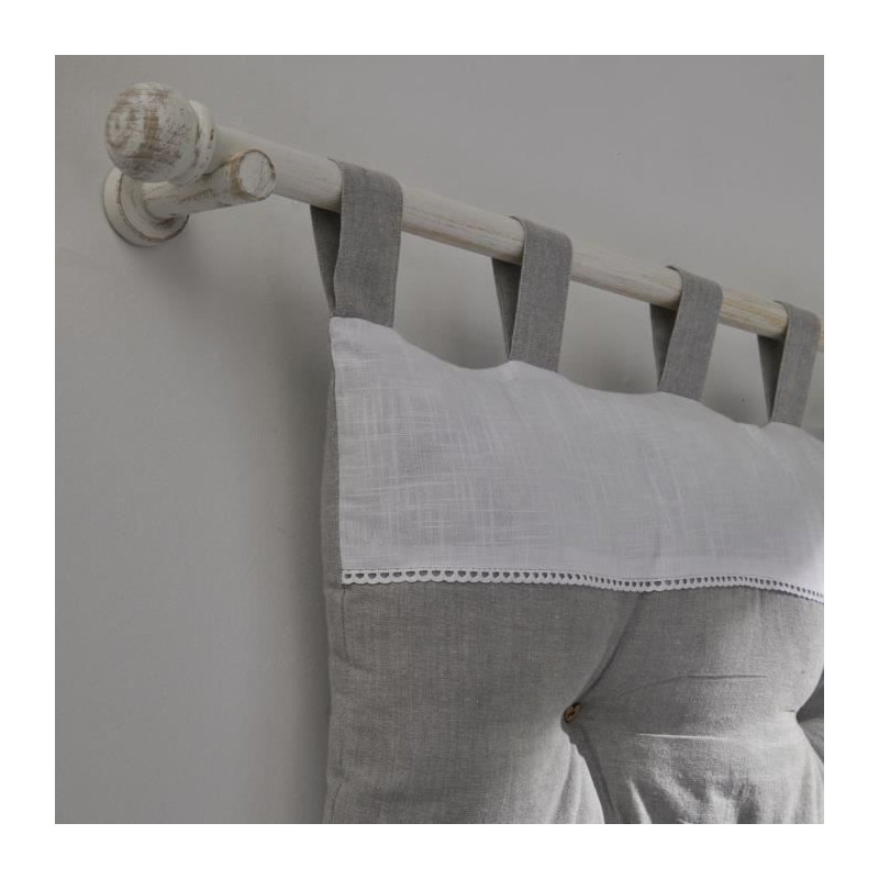 Ajoutez une touche de confort et de décoration a votre chambre avec la tete de lit Charme de Today ! Ce coussin de 45x70 cm, avec son tissu bicolore et son liseré en dentelle, s'accroche facilement a une barre murale grâce a ses 5 pattes. Sa housse en 100% coton et son garnissage en polyester assurent douceur et qualité. Complétez votre mobilier et linge de lit avec les autres produits de la collection Charme par Today, aux couleurs et motifs assortis.