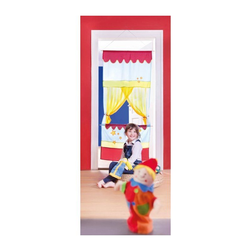 Castelet de marionnettes a suspendre - ROBA - Décor cirque rouge, jaune