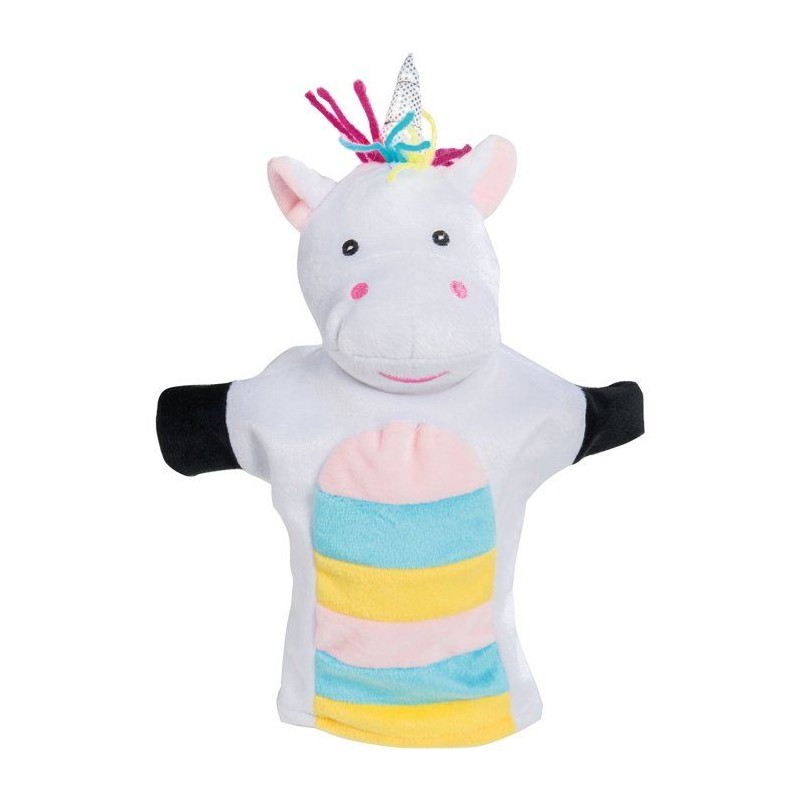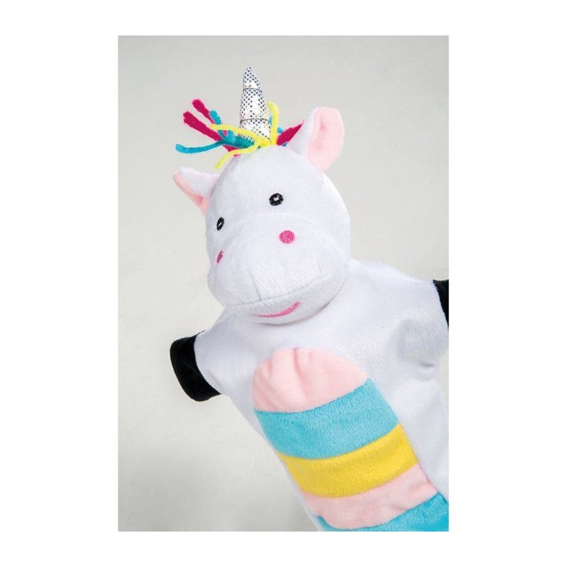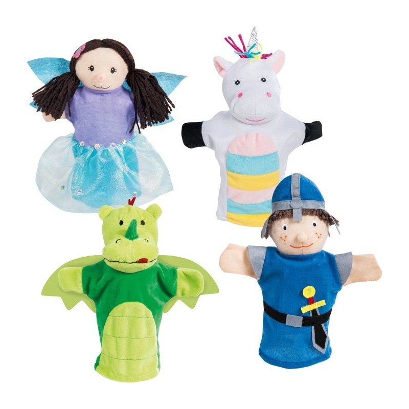 Set de 4 marionnettes a main - ROBA - Fée enchanteresse, Licorne en peluche, Dragon et Fier chevalier - Vert / Bleu / Turquoise
