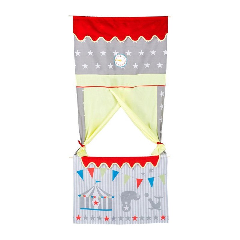 Castelet de marionnettes a suspendre - ROBA - Décor cirque Gris / Rouge / Jaune