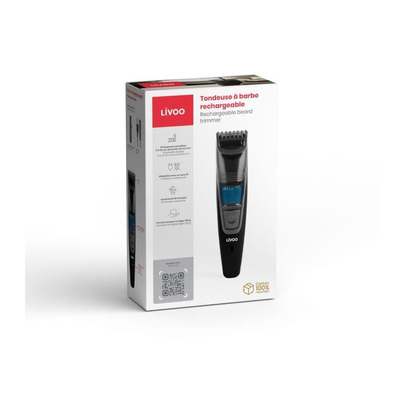 Optez pour la tondeuse a barbe rechargeable LIVOO DOS186 et profitez d'une coupe parfaite a chaque utilisation. Avec ses 20 longueurs de coupe jusqu'a 10 mm et son autonomie de 90 minutes, elle s'adapte a toutes vos envies. Utilisable avec ou sans fil, elle est idéale pour une utilisation a domicile ou en déplacement. Son format compact et son chargement USB en font un accessoire pratique et moderne.