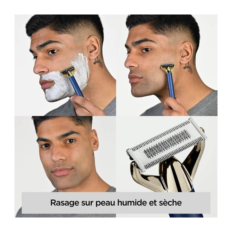 Tondeuse a barbe et rasoir - BABYLISS - X-Blade Super-X Metal - Sans fil - Autonomie 45 min - 4 sabots - Edition or & bleu marin