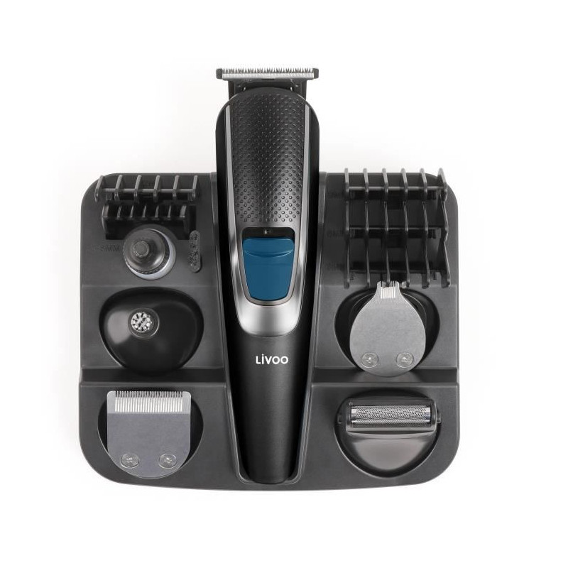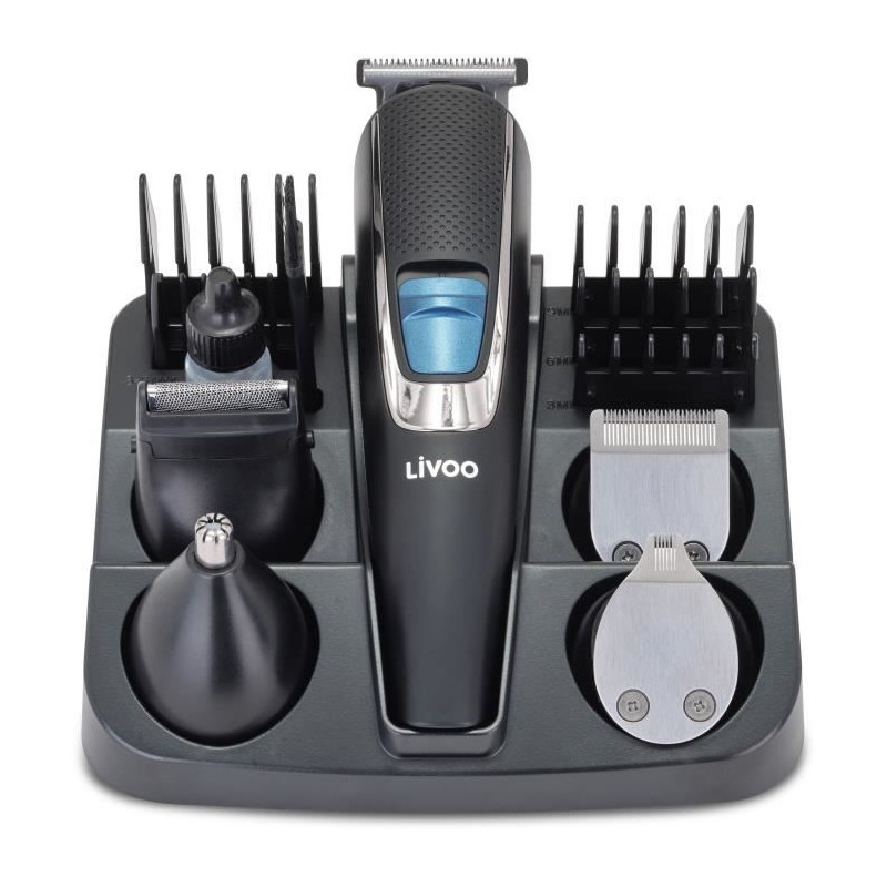 Set tondeuse multifonction - LIVOO - DOS187 - 3,7 W - 90 min - 5 tetes - 5 sabots - Socle de rangement - Noir / Bleu
