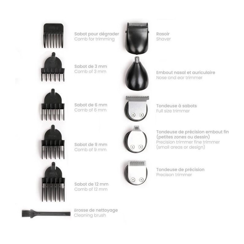 Le set tondeuse multifonction LIVOO DOS187 est l'outil polyvalent par excellence. Avec ses 5 tetes interchangeables et ses 5 sabots, il s'adapte a toutes vos envies de coiffure, que ce soit pour les cheveux, la barbe ou le corps. Son autonomie de 90 minutes et son socle de rangement en font un accessoire pratique et performant.