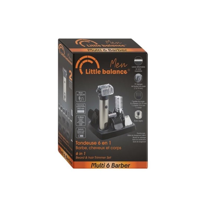 Tondeuse multifonction - LITTLE BALANCE - 6 Barber 6-en-1 - 240 min - 6 tetes - Inox