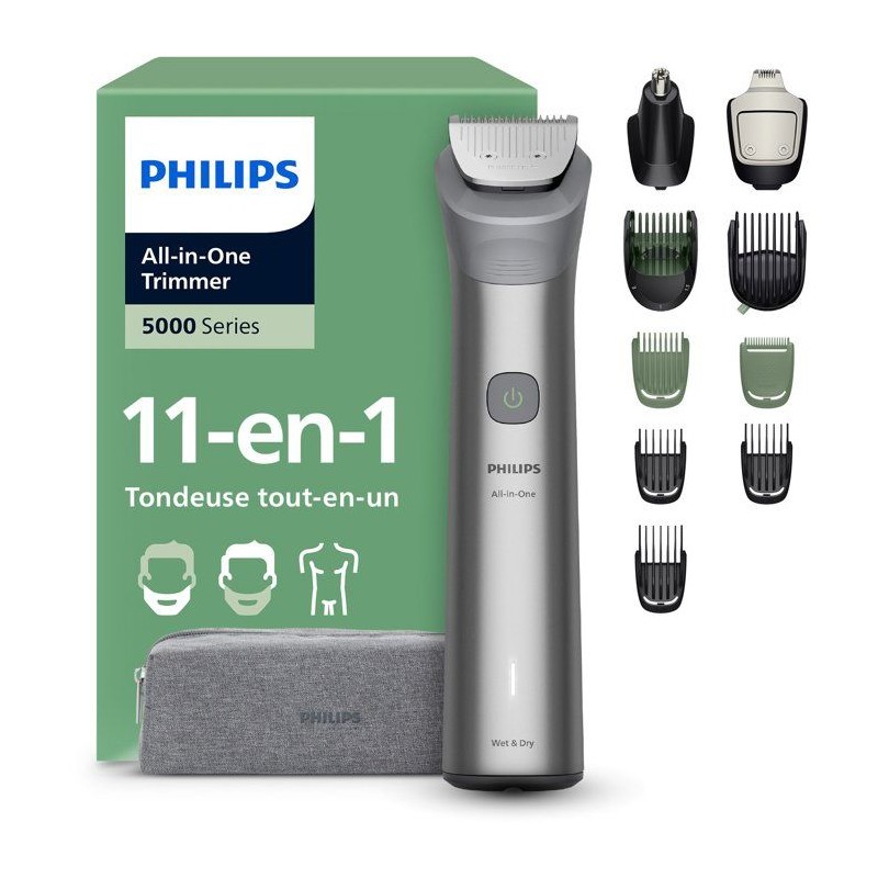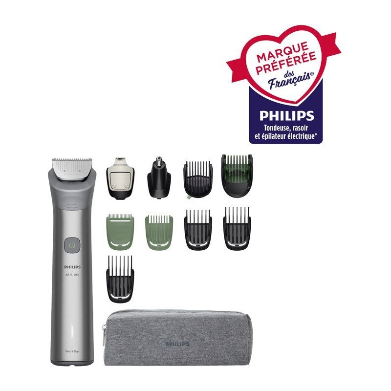 Tondeuse multifonction 11-en-1 étanche - PHILIPS - Series 5000 MG5941/15 - 120 min - Sans fil - Gris clair
