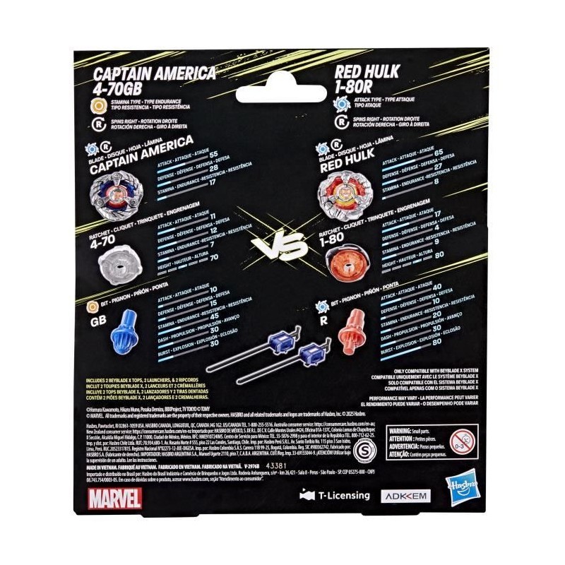 Beyblade X Multipack Toupie Captain America 4-70GB contre Red Hulk 1-80R, des 8 ans