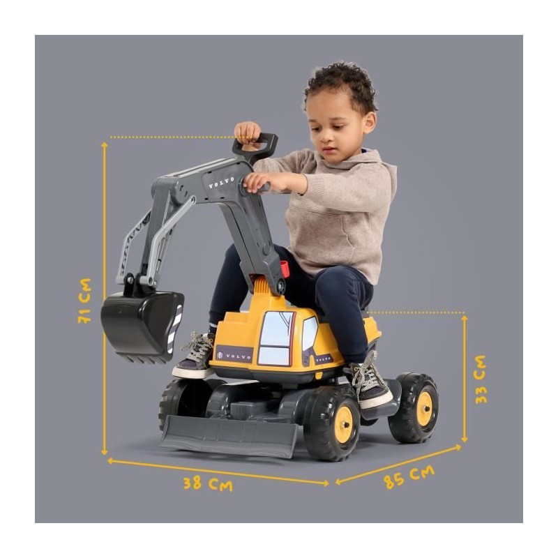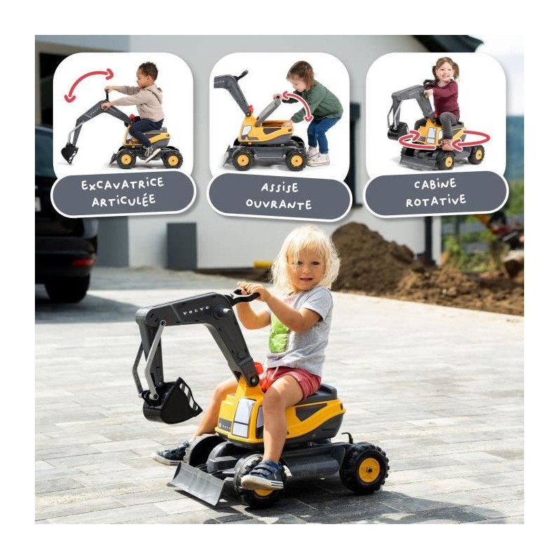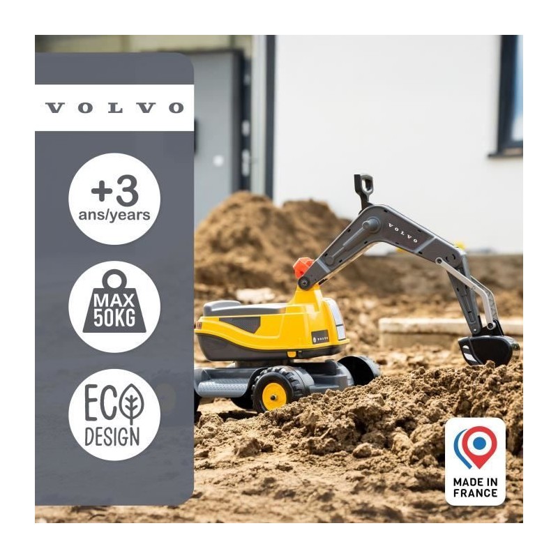 Il n'y a pas de chantier trop ambitieux pour les petits bâtisseurs équipés de la pelleteuse Volvo avec sa cabine rotative a 360° équipée d'une assise ouvrable et sa pelle mécanique entierement articulée comme les vraies ! Ce véritable engin de chantier miniature est spécialement conçu pour résister aux enfants entre 3 et 7 ans et bénéficie d'une fabrication 100% Française pour garantir des heures de jeux : commencer a creuser la piscine pour les parents ou déterrer le massif de tulipes de mamie, les idées de scénarios ne viendront jamais a manquer !